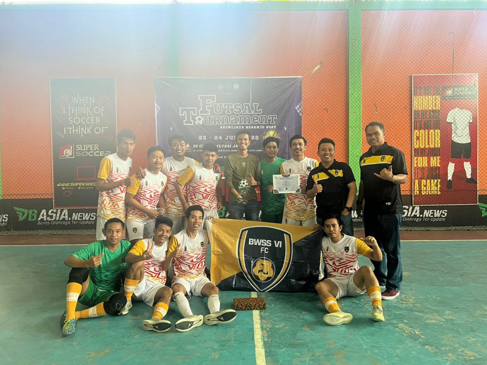 JAMBIUPDATE.CO, JAMBI- Tim Futsal Balai Wilayah Sungai Sumatera (BWSS) VI FC kembali menyumbang prestasi. Mereka berhasil menyelesaikan tugas berat dalam Futsal Turnament Sriwijaya Besanjo 2023.