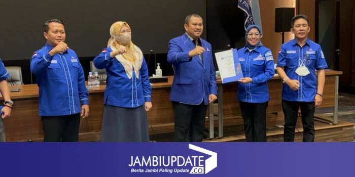 Dalam penyerahkan itu hadir juga Ketua DPD Demokrat Provinsi Jambi Mahuri dan Sekretaris Syamsu Rizal. SK diserahkan Mashuri setelah sebelumnya diterima dari Ketua Umum AHY.