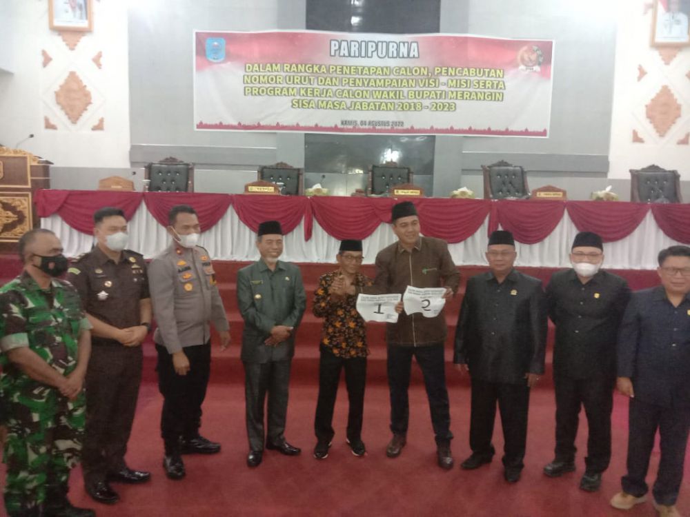 JAMBIUPDATE.CO, JAMBI- Dua calon wakil bupati Merangin, Heri S Moza alias Taboy dan Nilwan Yahya akan bertarung memperebutkan kursi Wabup sisa jabatan 2018-2023. Hari ini, Kamis (4/8), keduanya sudah resmi ditetapkan sebagai calon dalam rapat Paripurna digedung DPRD Merangin.