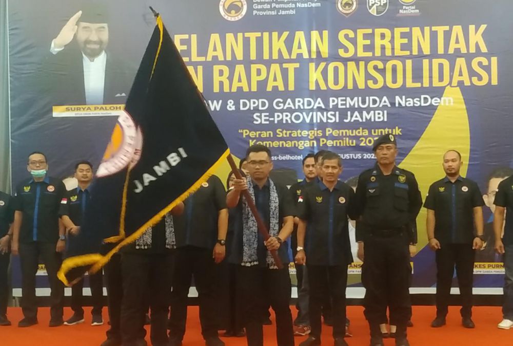 "Kita juga harus bangga, karena ini pertama kali pengurus Gerda Prmuda NasDem dilantik secara serentak se-Provinsi Jambi," katanya.