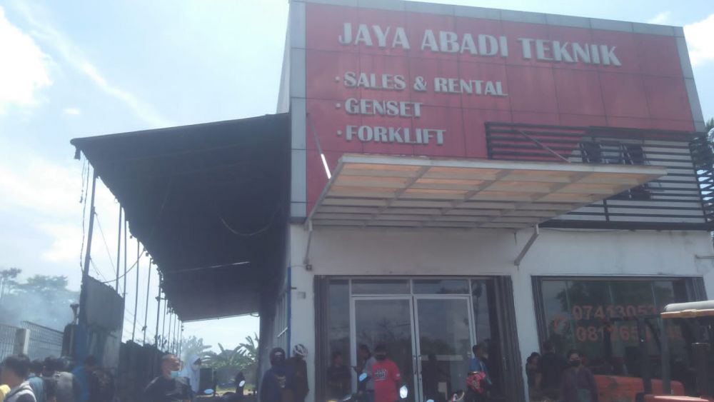 Akibat peristiwa tersebut, sebuah toko Jaya Abadi Teknik hangus terbakar.