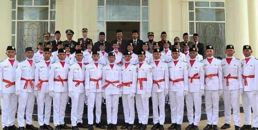 JAMBIUPDATE.CO, MUARASABAK - Pasukan Paskibraka Kabupaten Tanjabtim angkatan tahun 2022, dikukuhkan (16/8/22), di ruang pola Rumah Dinas Bupati Tanjabtim.
