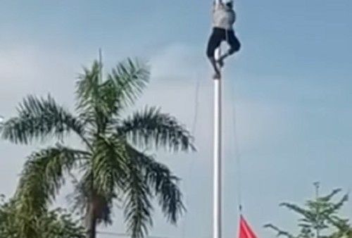 JAMBIUPDATE.CO, KARAWANG - Viral sebuah video seorang petani memanjat tiang bendera akibat tali nyangkut saat upacara peringatan HUT ke-77.