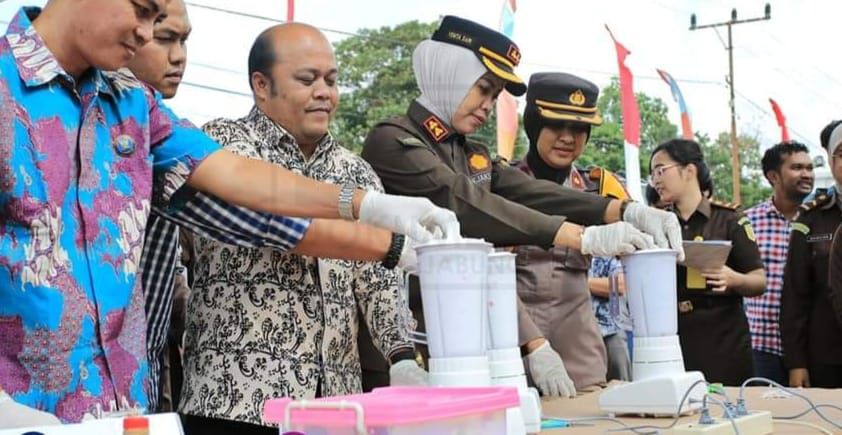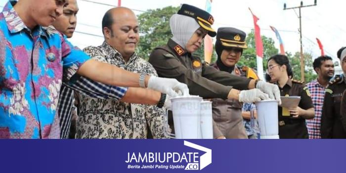 JAMBIUPDATE.CO, MUARASABAK - Wakil Bupati Tanjabtim, H. Robby Nahliyansyah, SH menghadiri pemusnahan Barang Bukti di Kejaksaan Negeri Kabupaten Tanjabtim, Kamis (18/8) siang.
