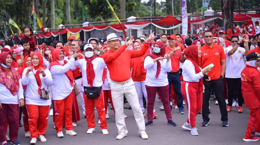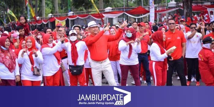 JAMBIUPDATE.CO, JAMBI- Pemerintah Kota Jambi menggelar perlombaan panjat pinang sebanyak 45 batang, lomba tarik tambang, lari balap karung, gebuk bantal diatas kolam air, senam massal 'Merah Putih" dan berbagai permainan seru lainnya, yang dilaksanakan dalam rangka memeriahkan peringatan 77 Tahun Kemerdekaan Indonesia di KOta Jambi. Kegiatan tersebut berlangsung di Lapangan Utama Balaikota Jambi (20/8). Tidak hanya itu, kali ini Pemkot Jambi juga menyelenggarakan Siginjai Fashion Week (SFW), sebagai ajang untuk menyalurkan kreatifitas masyarakat dan pelajar dibidang mode dan fashion. SFW sendiri dilaksanakan tepat didepan Tugu Keris Siginjai Taman Pedesterian Jomblo Kotabaru, dengan mengusung konsep street fashion.