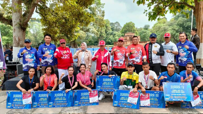 JAMBIUPDATE.CO, JAMBI - Lomba lari tingkat nasional 10 Kilometer (10 K) di Candi Muaro Jambi 10 usai digelar Minggu (21/8). Gubernur Jambi Al Haris didampingi Wakil Gubernur Jambi Abdullah Sani menutup langsung 10 K di Candi Muaro Jambi.