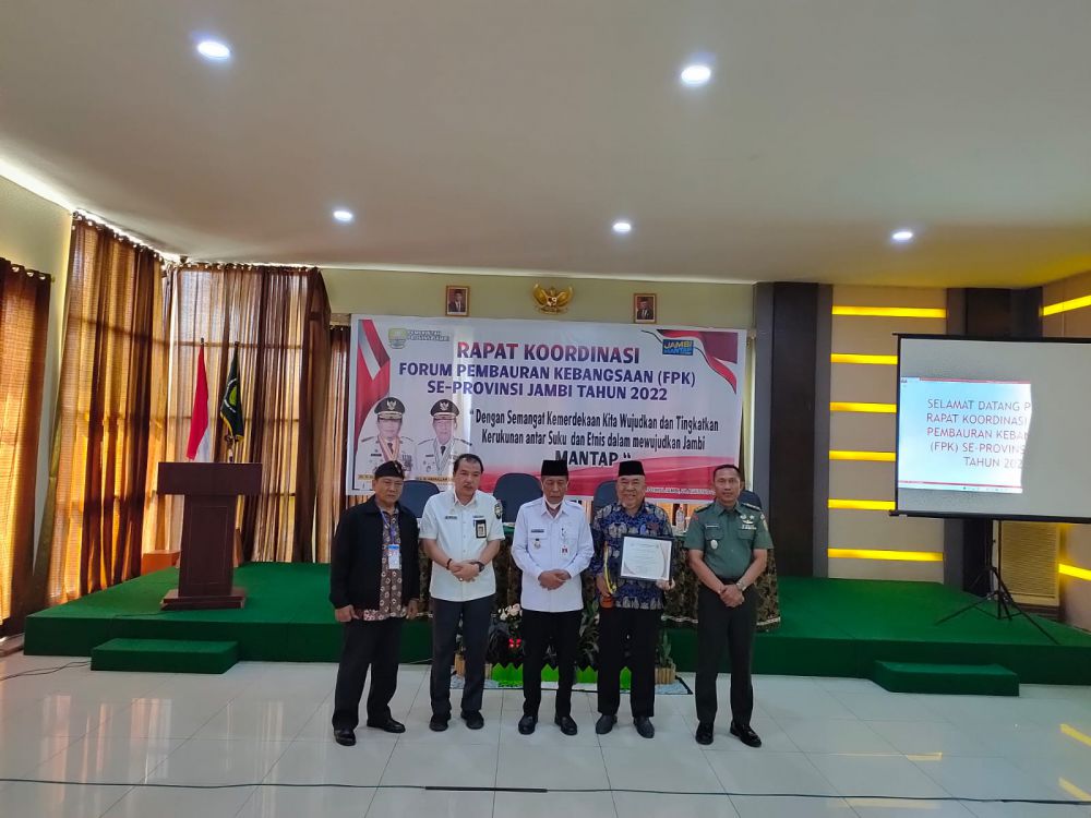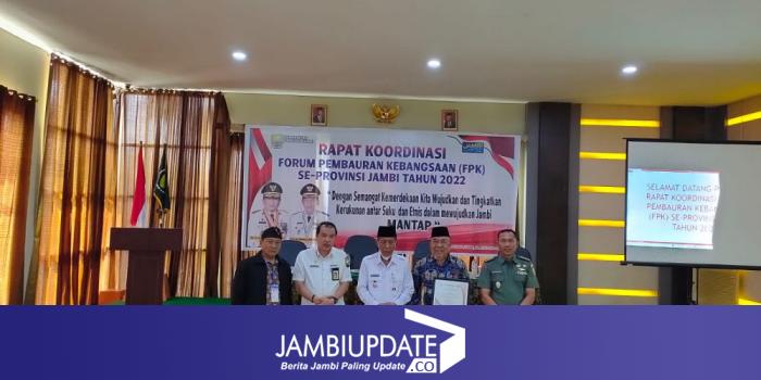 JAMBIUPDATE.CO, JAMBI – Badan Kesatuan Bangsa dan Politik (Bakesbangpol) Provinsi Jambi menggelar Rapat Koordinasi (Rakor) Forum Pembauran Kebangsaan (FPK) tahun 2022.