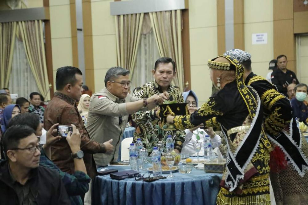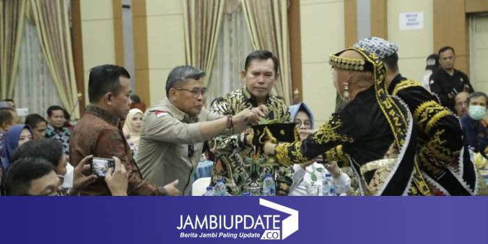 JAMBIUPDATE.CO, SUNGAI PENUH - Walikota Sungai Penuh Ahmadi Zubir bersama Wakil Walikota Sungai Penuh Alvia Santoni sambut kunjungan kerja Wakil Menteri Lingkungan Hidup dan Kehutanan Republik Indonesia, Aloe Dohong, Ph.D beserta Direktorat Jenderal PSLB3 KLHK dan Gubernur Jambi di Aula Kantor Walikota Sungai Penuh. Rabu Malam (24/8).