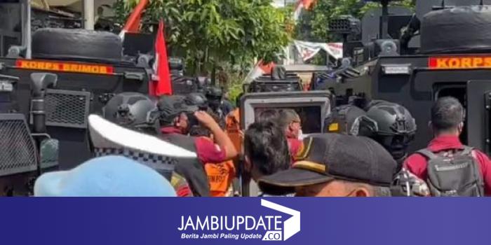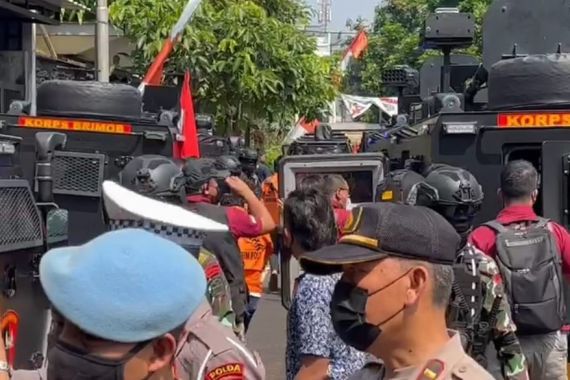 Penjagaan dilakukan Brimob berseragam roleng dengan senjata lengkap laras panjang.