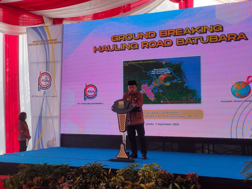 Al Haris dalam kata sambutannya meminta kepada PT Putra Bulian Properti agar serius mengerjakan proyek jalan khusus batu bara ini.
