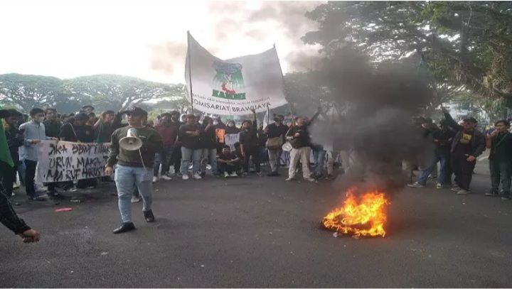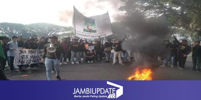 JAMBIUPDATE.CO, MALANG - Massa mahasiswa menggelar demo penolakan kenaikan harga BBM di Balai Kota Malang, Senin (5/9).