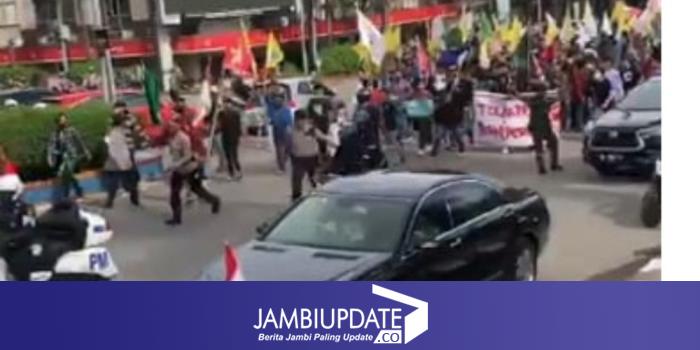 JAMBIUPDATE.CO, PALEMBANG - Mobil rombongan Wakil Presiden (Wapres) KH Maruf Amin, diadang pendemo saat melintas di simpang empat RS RK Charitas, Rabu (7/9/2022).