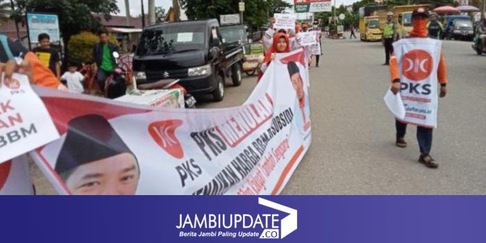 JAMBIUPDATE.CO, SAROLANGUN – Pengurus DPD II Partai Keadilan Sejahtera (PKS) Kabupaten Sarolangun, menolak kenaikan harga Bahan Bakar Minyak (BBM) Bersubsidi yang ditetapkan pemerintah, dengan cara melakukan aksi turun ke jalan raya, tepatnya di Jalan Lintas Sumatera Kota Sarolangun, Depan Taman PKK Sarolangun, Sabtu (10/09/2022) sekitar pukul 10.00 Wib.