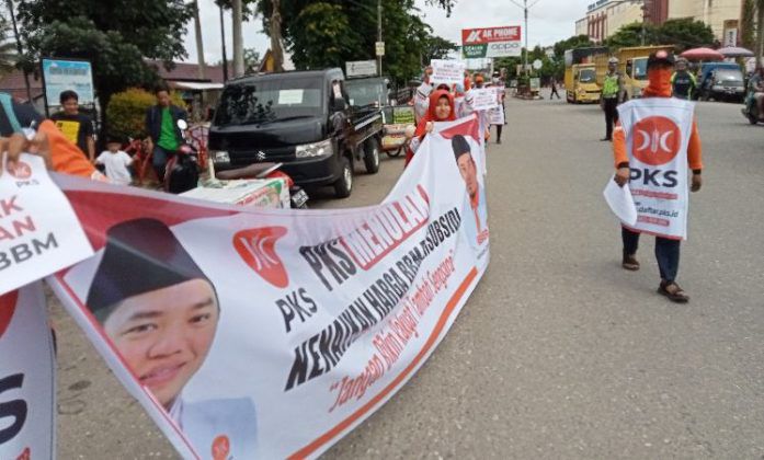 “PKS menolak kenaikan harga BBM Bersubsidi, jangan bikin rakyat tambah sengsara. Tolak, Tolak, Tolak naik harga BBM. Naiknya harga BMM mari kita tolak. Kami menyampaikan ketegasan partai PKS di seluruh Indonesia menyatakan penolakan keras dan tegas kenaikan harga BBM bersubsidi,” kata Sekretaris DPD II PKS Khaidir dalam kegiatan tersebut.