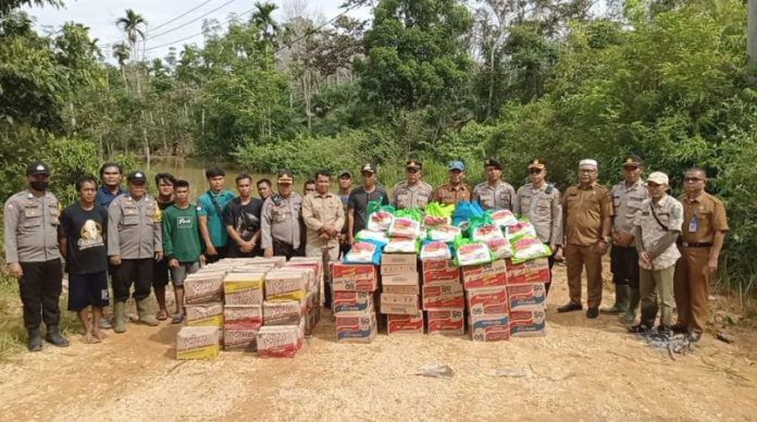 Kapolres menyerahkan bantuan kemanusiaan yang diterima Kepala Desa Sepintun, Kepala Desa Lamban Sigatal dan Kepala Desa Lubuk Napal, Bantuan yang berasal dari Polri Berupa 60 dus Mie Instan dan 35 Paket Sembako sedangkan Pemkab Sarolangun menyalurkan 50 dus Mie instan dan 216 paket sembako.