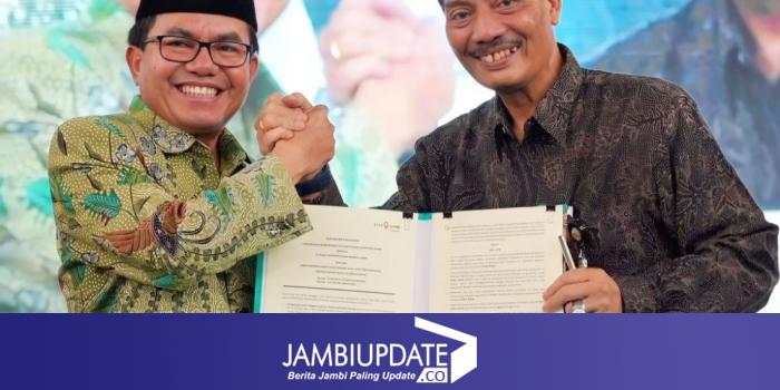 JAMBIUPDATE.CO, JAMBI - Bank Jambi melaksanakan Penandatanganan Perjanjian Kerjasama Hibah Bank 9 Jambi dan UIN STS Jambi yang dilakukan oleh Dirut Bank Jambi, Dr. H. Yunsak El Halcon, S.H.,M.Si dan Rektor UIN STS Jambi, Su’aidi Asy’ari. Kamis (12/9) lalu.