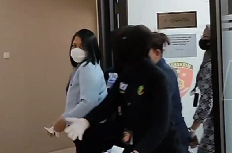 Sosok Putri Candrawathi ditemani oleh kuasa hukum Arman hadir di Mabes Polri, Jakarta, Jumat, 30 September 2022 siang WIB.