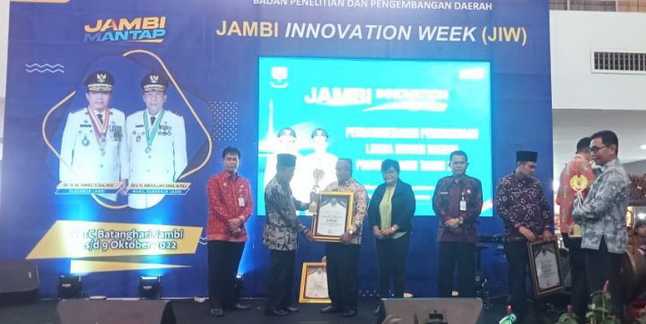 JAMBIUPDATE.CO, SAROLANGUN - Pemerintah Kabupaten Sarolangun menerima penghargaan juara III pada kategori Kabupaten/Kota Se-Provinsi Jambi dalam ajang penyelenggaran Jambi Innovation Week (JIW) tahun 2022.