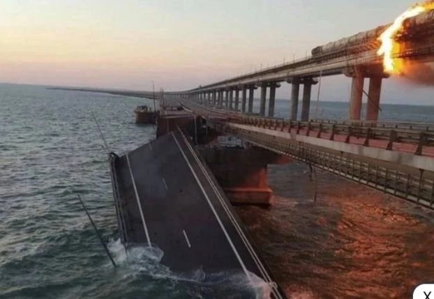 Jembatan Krimea yang dikuasai oleh Rusia itu hancur setelah diledakkan dari sebuah bom truk.