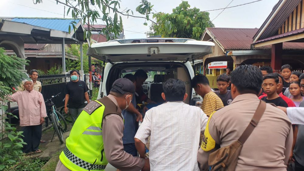 “Korban diketahui pertama kali oleh anaknya, langsung diturunkan bersama warga, kami datang langung melakukan upaya pertolongan medis ke RS namun nyawanya tidak tertolong." Tandasnya.(Sun)