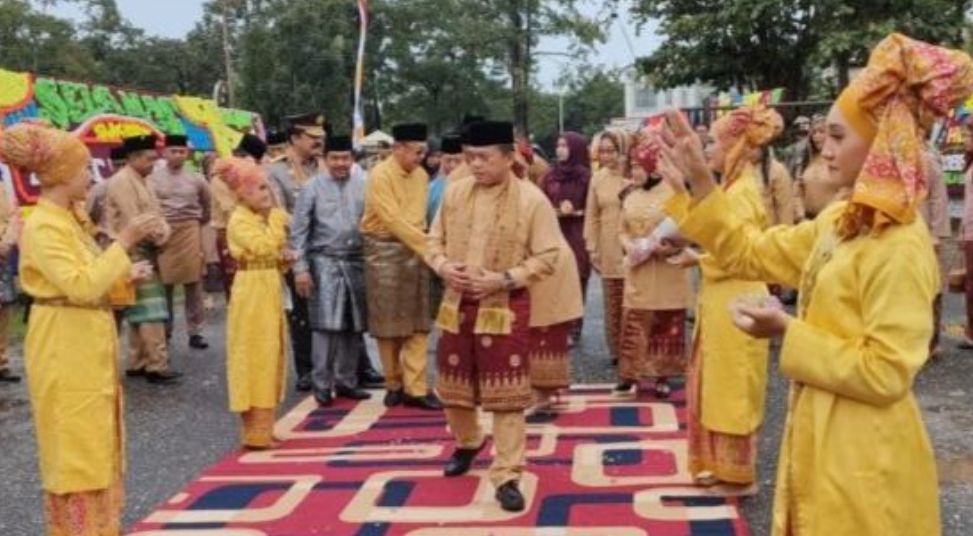JAMBIUPDATE.CO, JAMBI - Gubernur Jambi, Al Haris beserta istri Hesnidar Haris menghadiri peringatan hari ulang tahun (HUT) ke 23 Kabupaten Sarolangun 2022, Selasa (25/10/2022).