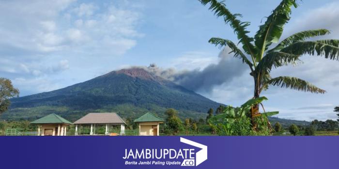 JAMBIUPDATE.CO, KERINCI - Hingga hari ke 10, sejak 18 Oktober sampai Kamis 27 Oktober 2022 Gunung Kerinci masih erupsi. Asap tebal warna kehitaman atau abu vulkanik terus menyembur dari kawah gunung api tertinggi di Sumatera itu.