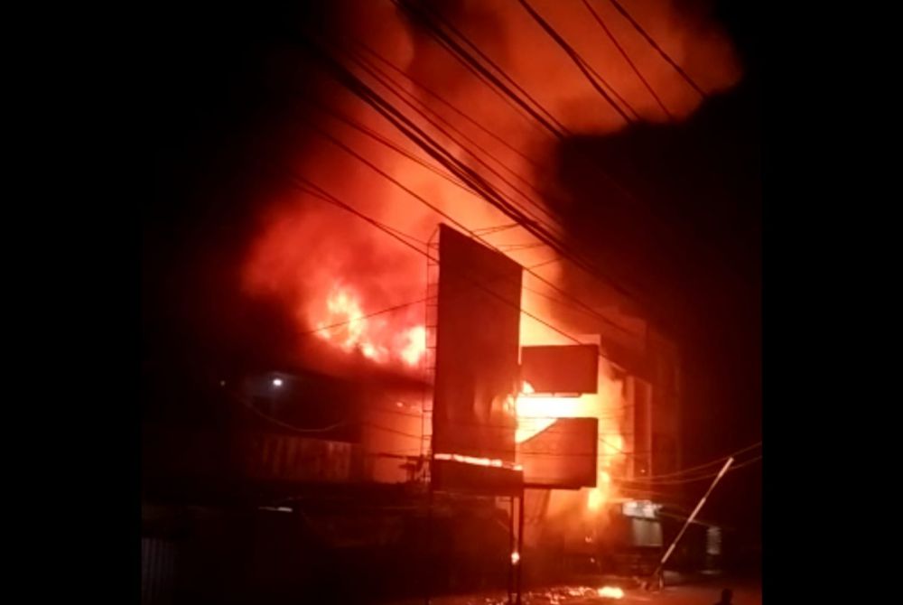 Salah seorang yang berada dilokasi Kebakaran Kuala Tungkal dikonfirmasi mengatakan lokasi kebakaran di depan pintu masuk WFC.