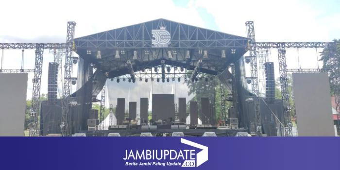 JAMBIUPDATE.CO, JAMBI - Panggung konser band Dewa 19 di jambi telah berdiri kokoh. Panggung berukuran 10x16 meter ini sudah siap menampilkan perform terbaik dari para personil group band legendaris Indonesia itu.