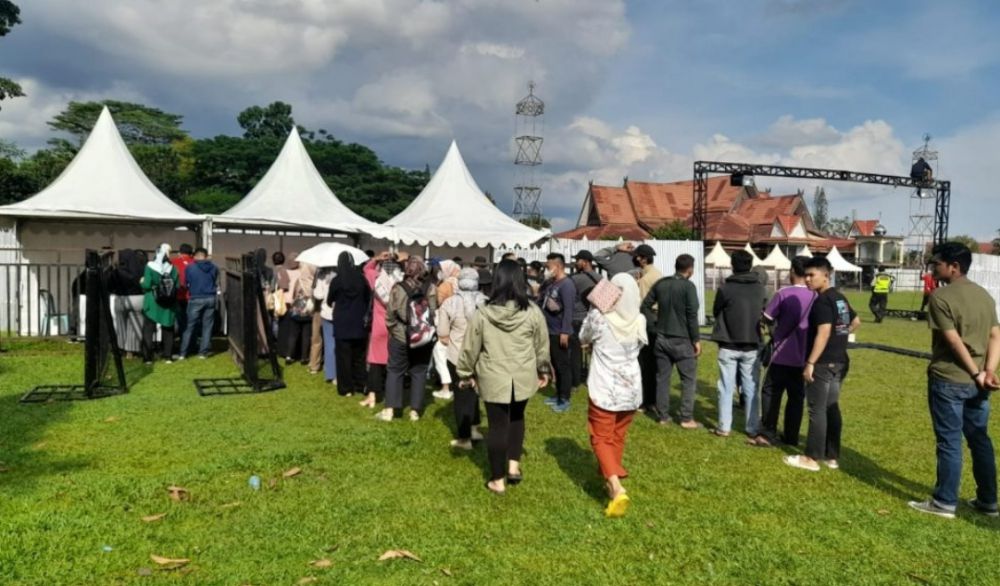 JAMBIUPDATE.CO, JAMBI - Penukaran tiket konser band Dewa 19 di Jambi sudah dibuka, penonton sudah bisa menukarkan tiketnya di venue (lokasi) konser yang berlokasi di Ex Arena MTQ Provinsi Jambi sejak pukul 14.00 WIB, Jumat (28/10/2022).