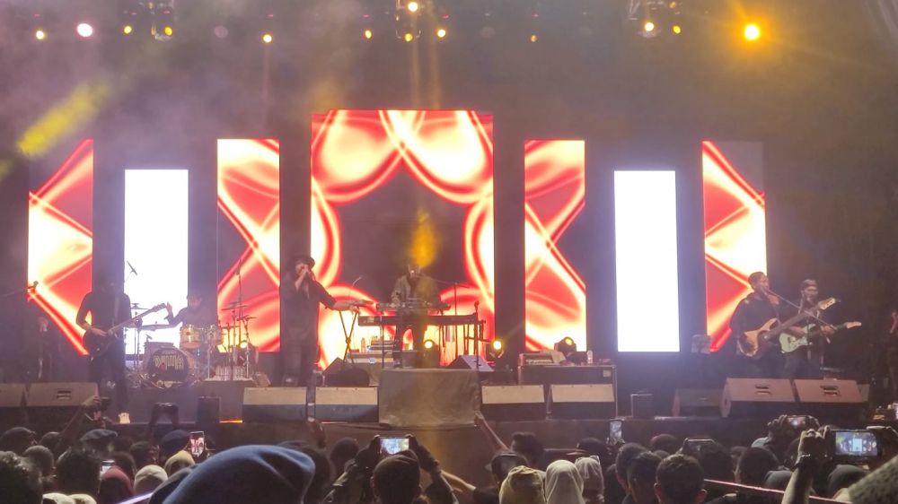 Saat opening menggunakan videotron dan lighting paling canggih di panggung, sontak para penonton berlarian maju mendekat ke panggung untuk menyaksikan aksi band bergenre pop rock itu.