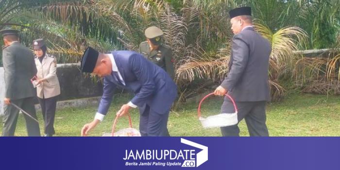 Usai melaksanakan upacara hari pahlawan, Wakil Bupati Bungo bersama rombongan langsung menggelar tabur bunga di Makam Pahlawan Satria Negara, kelurahan Manggis, Kecamatan Bathin III.(aes)