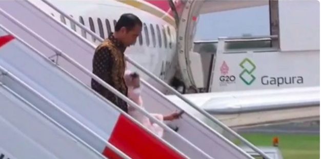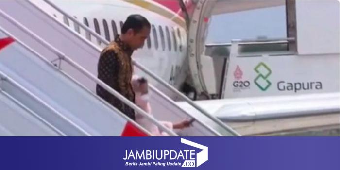 JAMBIUPDATE.CO, JAKARTA — Ibu Negara Iriana Joko Widodo sempat terpeleset di tangga pesawat saat tiba di Bandara I Gusti Ngurah Rai, Bali.