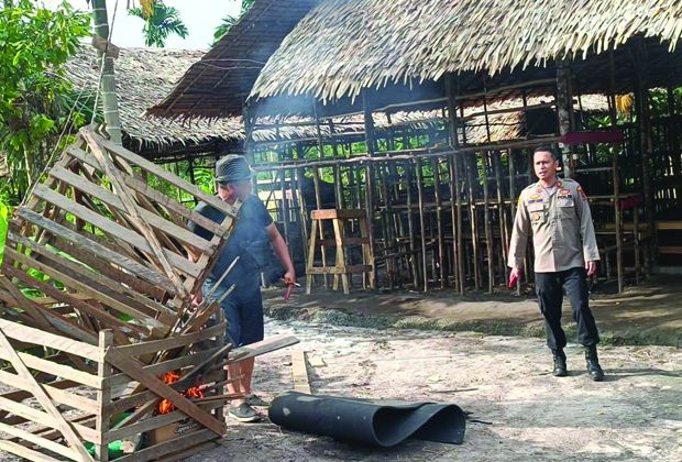 Selanjutnya, Tim membongkar pondok yang dijadikan tempat lokasi Sabung ayam dan sebagian dimusnahkan dengan cara dibakar dan memasang Police Line serta mengamankan R pemilik lahan tempat kegiatan sabung ayam.