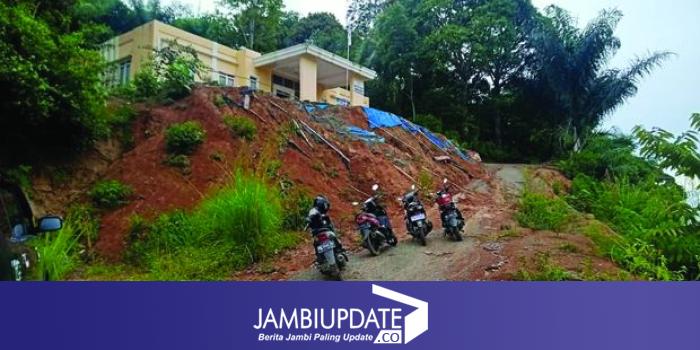 JAMBIUPDATE.CO, KERINCI- Tebing di kantor Camat Tanah Cogok, Kerinci terus amblas. Bahkan halaman di kantor camat tersebut terus runtuh hingga ke jalan, Senin (14/11/2022).