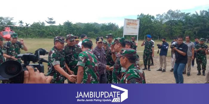 JAMBIUPDATE.CO, JAMBI - Pangdam II/Sriwijaya Mayjen TNI Hilman Hadi tiba di Kabupaten Batanghari, Provinsi Jambi, Jumat (18/11) pagi ini dengan menggunakan helikopter sekitar pukul 08.40 WIB.