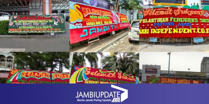 Pantauan di lokasi pelantikan SMSI Provinsi Jambi, terlihat karangan memadati area hotel hingga di Taman Gajah dan Tugu Pers Kota Jambi.
