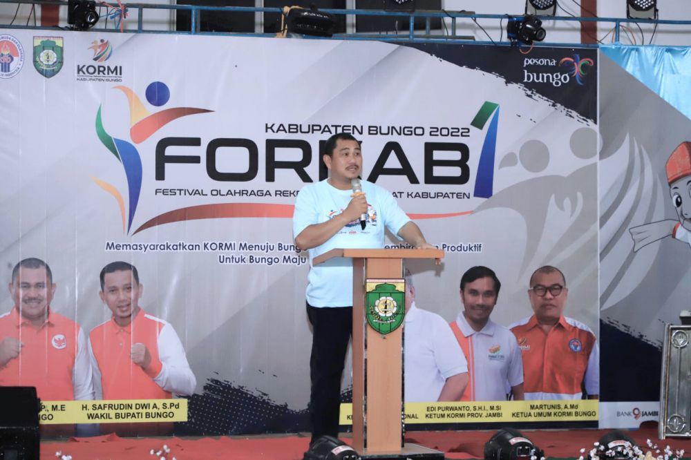 JAMBIUPDATE.CO, MUARA BUNGO- Festival Olahraga Rekreasi Kabupaten (Forkab) yang digelar oleh Komite Olahraga Rekreasi Masyarakat Indonesia (KORMI) Kabupaten Bungo resmi dibuka pada Jumat malam kemarin (18/11).