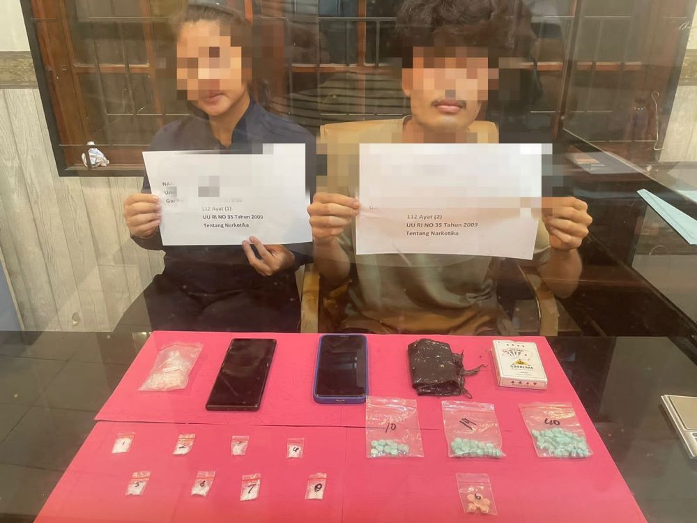 Di kamar tersebut, tim berhasil mengamankan kedua pelaku beserta barang bukti pil ekstasi sebanyak 10 butir dan sabu 8 paket kecil.
