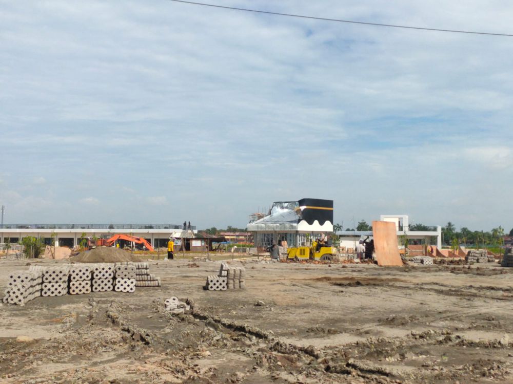 Selanjutnya pekerjaan yang sudah tampak fisiknya seperti bangunan mushola, bangunan food court semacam kafe. Lalu juga ada Mushola. Kolam retensi. “Juga ada bundaran air yang sedang berprogres, yang nantinya akan ditempatkan patung angso duo setinggi 8 Meter yang dipesan dari pengrajin patung di jawa. Selain itu juga ada kolam yang diisi dengan perahu kajanglako, serta ada nantinya festival area atau tempat pertunjukkan yang panggunggnya bersifat bongkar pasang, dan sekelilingnya di lingkari tumbuhan,” ucap Iwan.