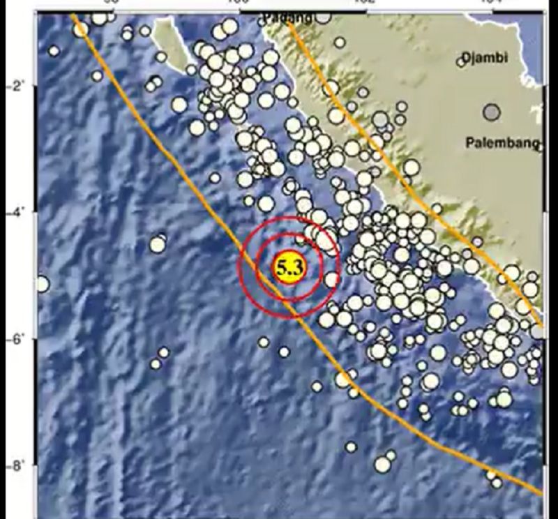 Dilansir dari Badan Meterologi, Klimatologi, dan Geofisika (BMKG). Gempa Magnitudo 5,3 yang mengguncangkan Bengkulu, berada pada kedalaman 10 km yang melanda laut sekitar 4.87 Laut Sekitar 100.79 BT.