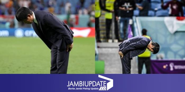 JAMBIUPDATE.CO, JAKARTA- Kalah dengan terhormat, Pelatih Timnas Jepang, Hajime Moriyasu dibanjiri pujian karena melakukan Saikeirei atau membungkuk kepada suporter Jepang atas dukungan mereka yang fantastik dalam perjalanan mereka selama pertandingan Piala Dunia 2022 Qatar.