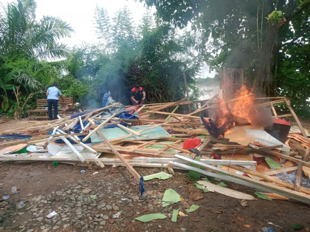 Sejumlah basecamp yang ditemukan ini langsung dibongkar paksa oleh petugas.