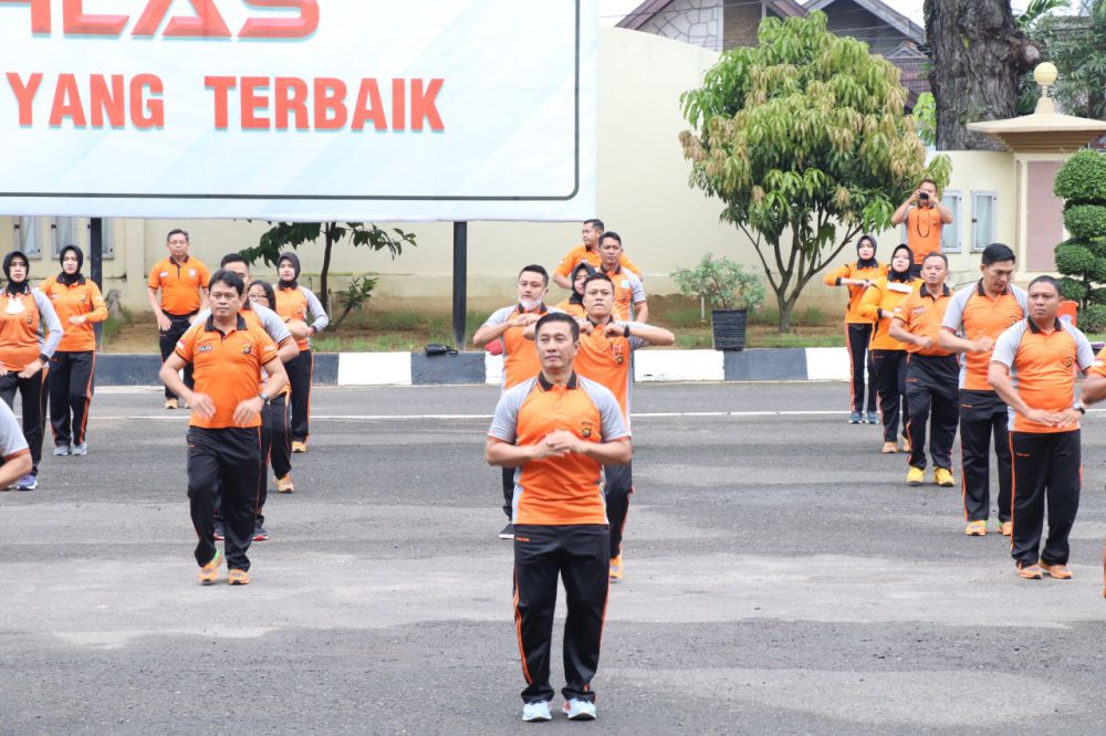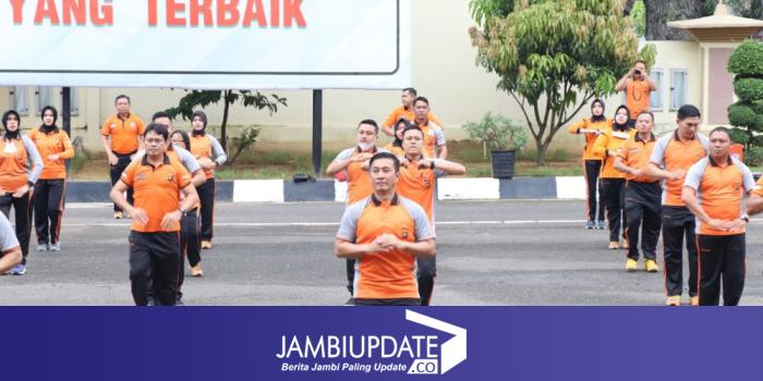 JAMBIUPDATE.CO, JAMBI-Usai pelaksanaan apel pagi, seluruh personel Polda Jambi mengikuti olahraga bersama yang digelar di lapangan hitam Mapolda Jambi  Jum'at (9/12/2022).