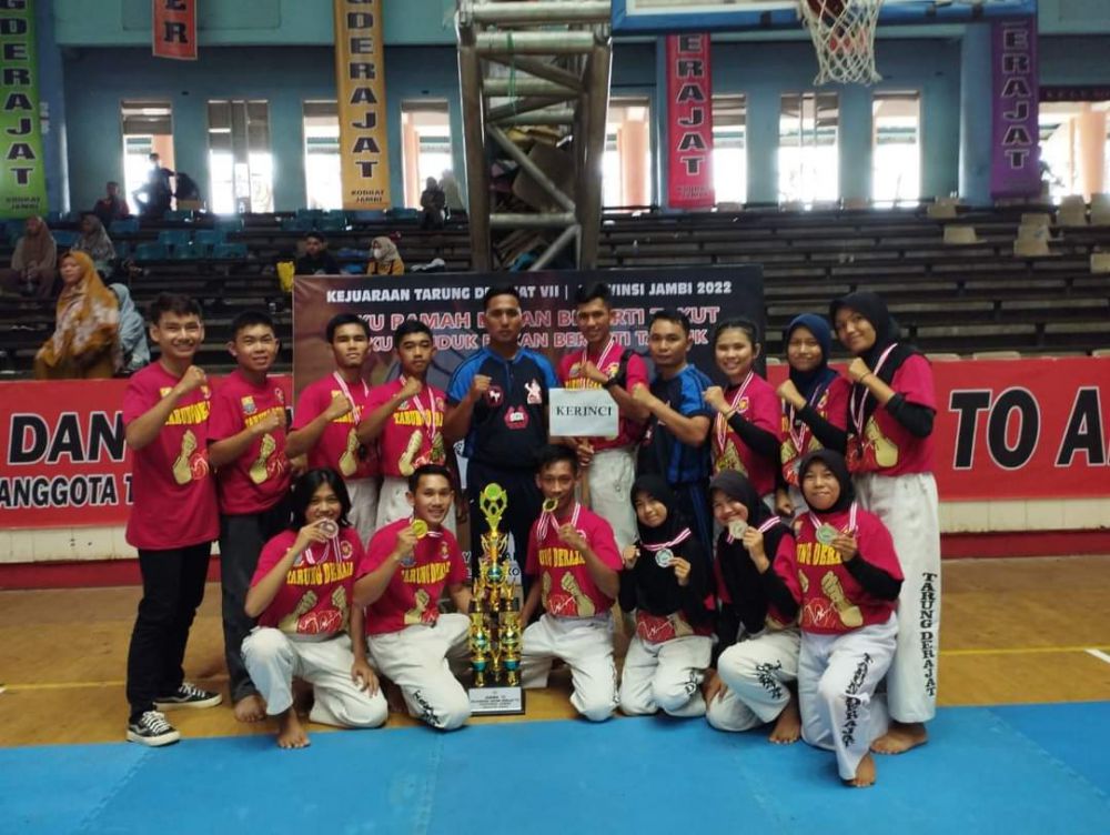 "Alhamdulillah Tarung Derajat Kerinci dapat Juara Umum 3 dengan perolehan medali 4 Emas, 2 perak dan 3 perunggu, " kata Juanda Sasmita Ketua Cabor Tarung Derajat Kerinci, Minggu (11/12/2022).