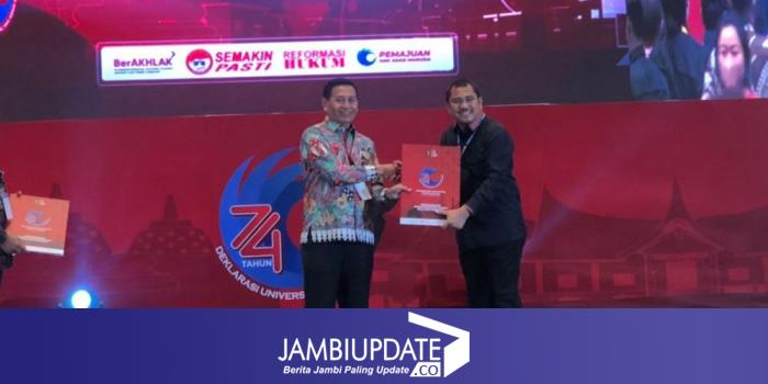 JAMBIUPDATE.CO, MUARA BUNGO - Bupati Bungo H. Mashuri atas nama Pemerintah Kabupaten Bungo menerima piagam penghargaan sebagai Kabupaten/Kota Peduli Hak Asasi Manusia (HAM) tahun 2021 pada acara Peringatan Hari Hak Asasi Manusia Sedunia ke-74 Tahun 2022.