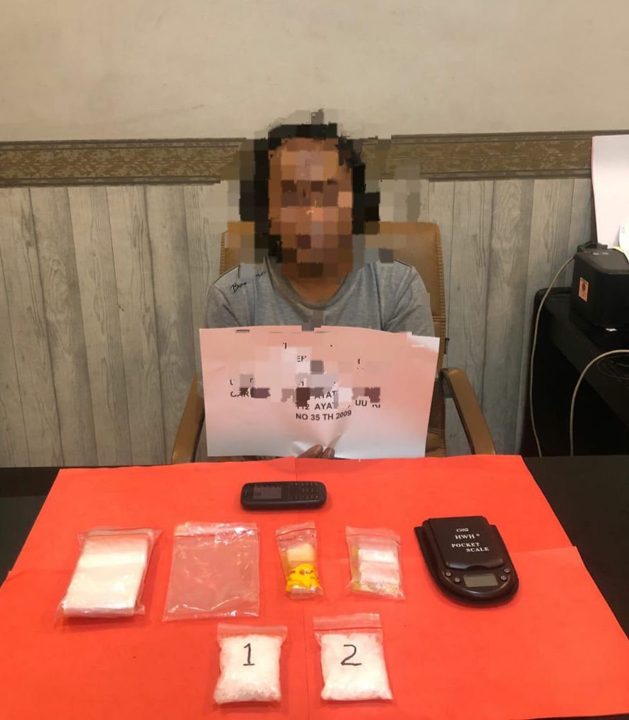 Dari tangan pelaku barang bukti yang berhasil diamankan yakni, dua paket sedang yang diduga narkotika jenis sabu-sabu seberat 82,44 gram,1 Unit handphone merek Nokia warna hitam, 1 unit timbangan digital, dan bungkusan plastik klip bening berbagai ukuran.