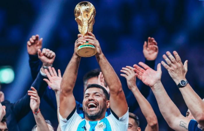 Pada saat prosesi pengangkatan trofi, Aguero diberi kesempatan oleh para pemain La Albiceleste untuk ikut mengangkat Piala Dunia 2022.