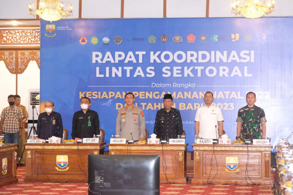 JAMBIUPDATE.CO, JAMBI- Menjelang natal 2022 dan tahun baru 2023, Pemerintah Provinsi Jambi melaksanakan rapat kordinasi (rakor) lintas sektoral Provinsi Jambi dalam rangka pengamanan natal 2022 dan tahun baru 2023, Selasa (20/12).