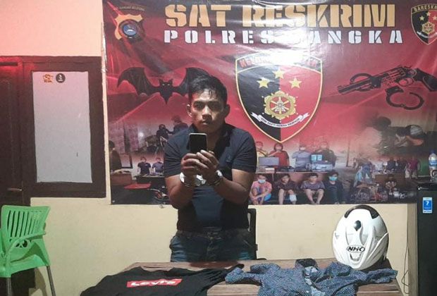 JAMBIUPDATE.CO, SUNGAILIAT- Usaha Medi Candra alias Medi (33) warga asal Jambi, untuk kabur ke Palembang urung terlaksana. Pasalnya ia lebih dahulu diringkus oleh Tim Kelambit Satreskrim Polres Bangka, Senin (2/1). Medi merupakan pelaku pengelapan sebuah hp dan sepeda motor dan mengaku sebagai serorang polisi.