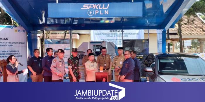 SPKLU pertama di Provinsi Jambi itu diresmikan Al Haris didampingi GM PLN UID S2JB, dan juga dihadiri Wali Kota Jambi Syarif Fasha.